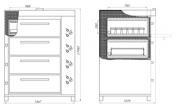 ​Расположение органов управления относительно пекарных камер: справа